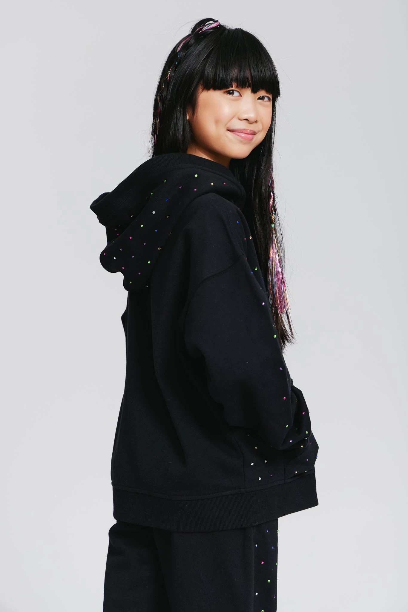 Girls Gems Zip Hoodie in Black
