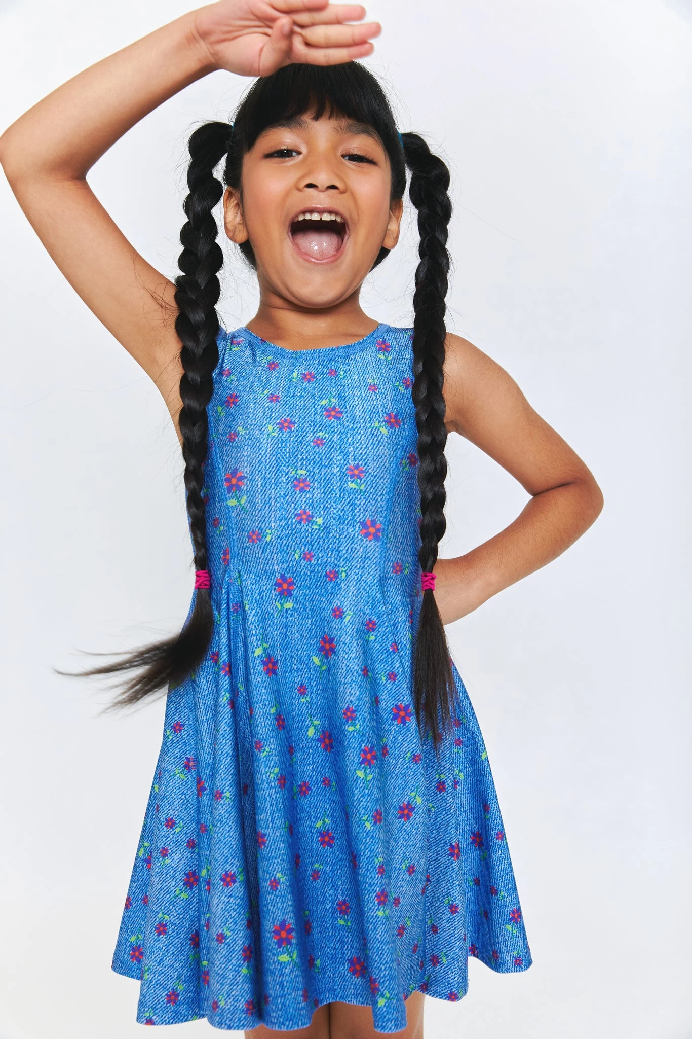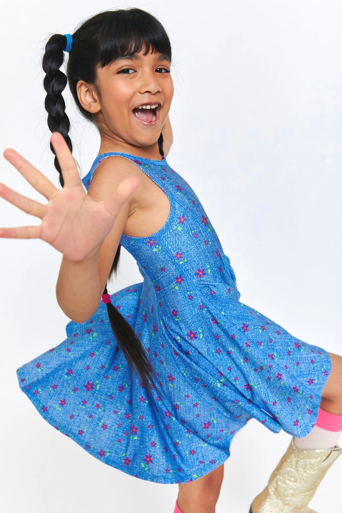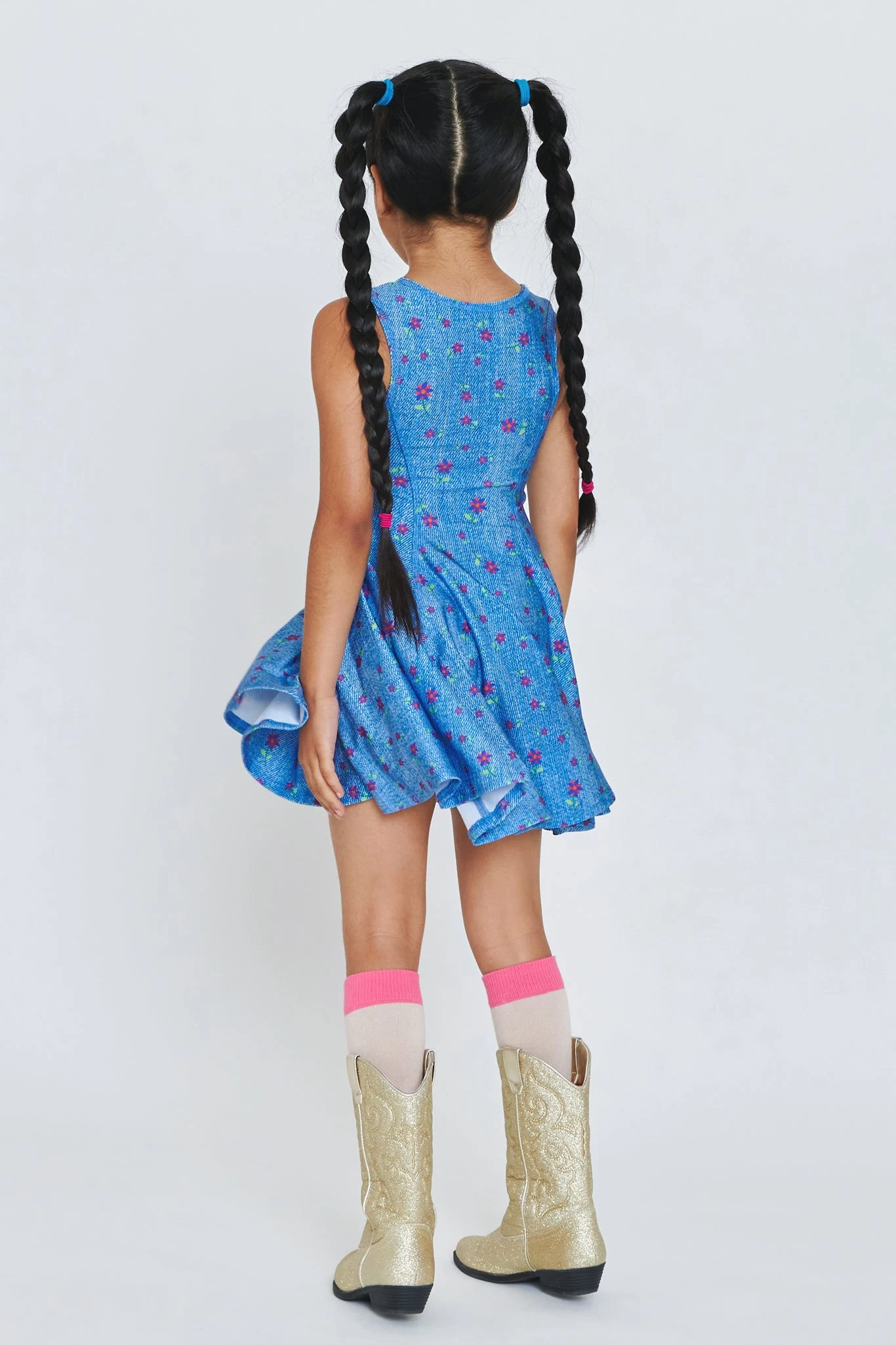 Girls Skater Dress in Floral Denim