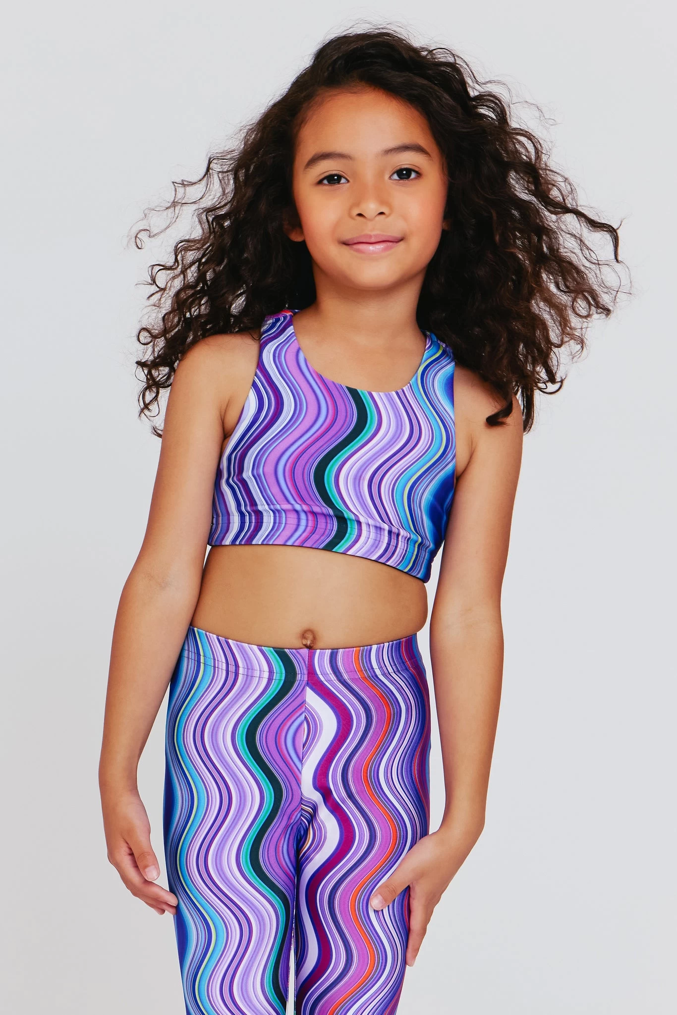 Girls Sports Bra in Purple Swirl Stripe
