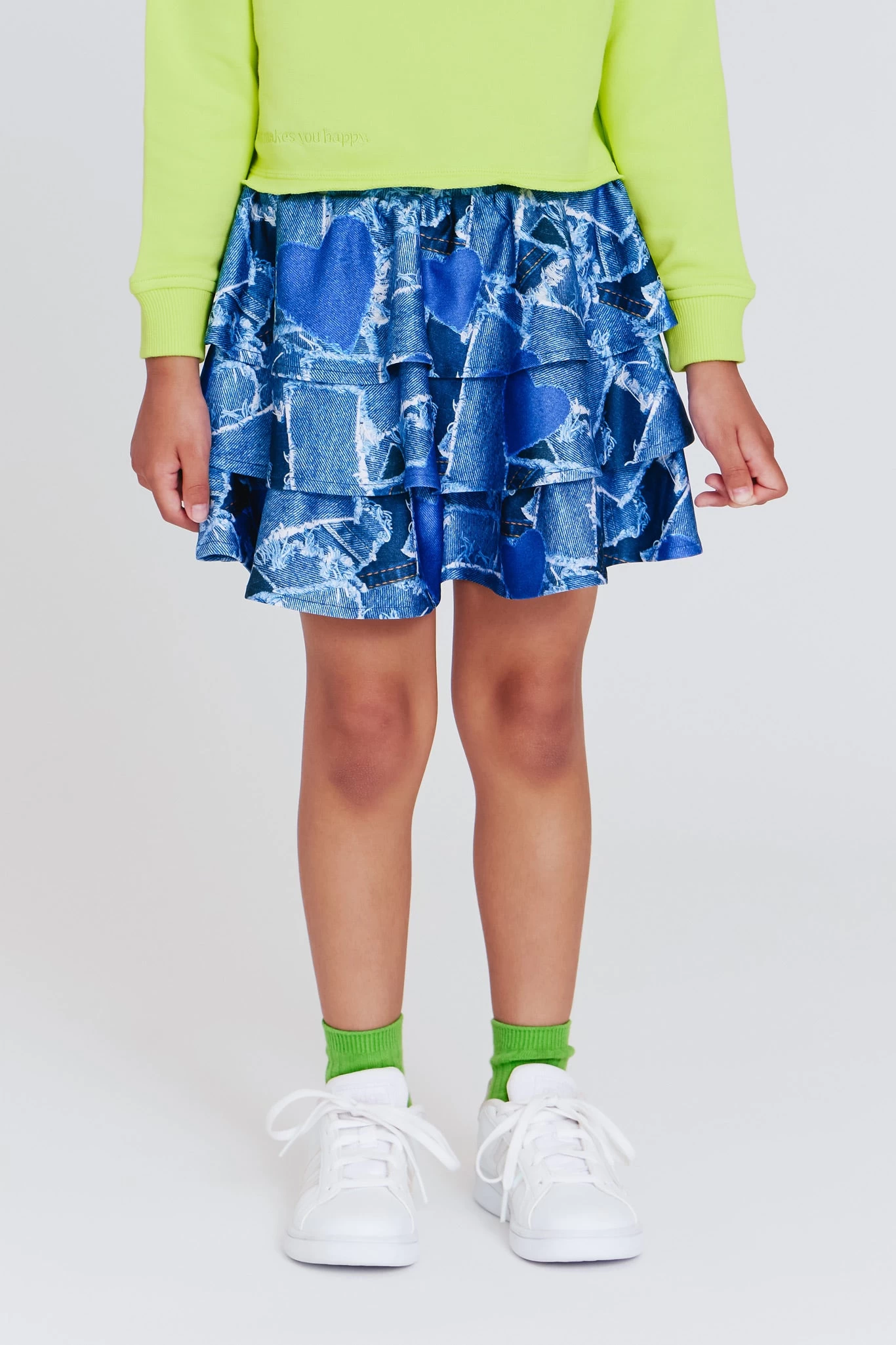 Be the first to review “Girls Tiered Skirt In Denim Heart Patchwork” Cancel reply
