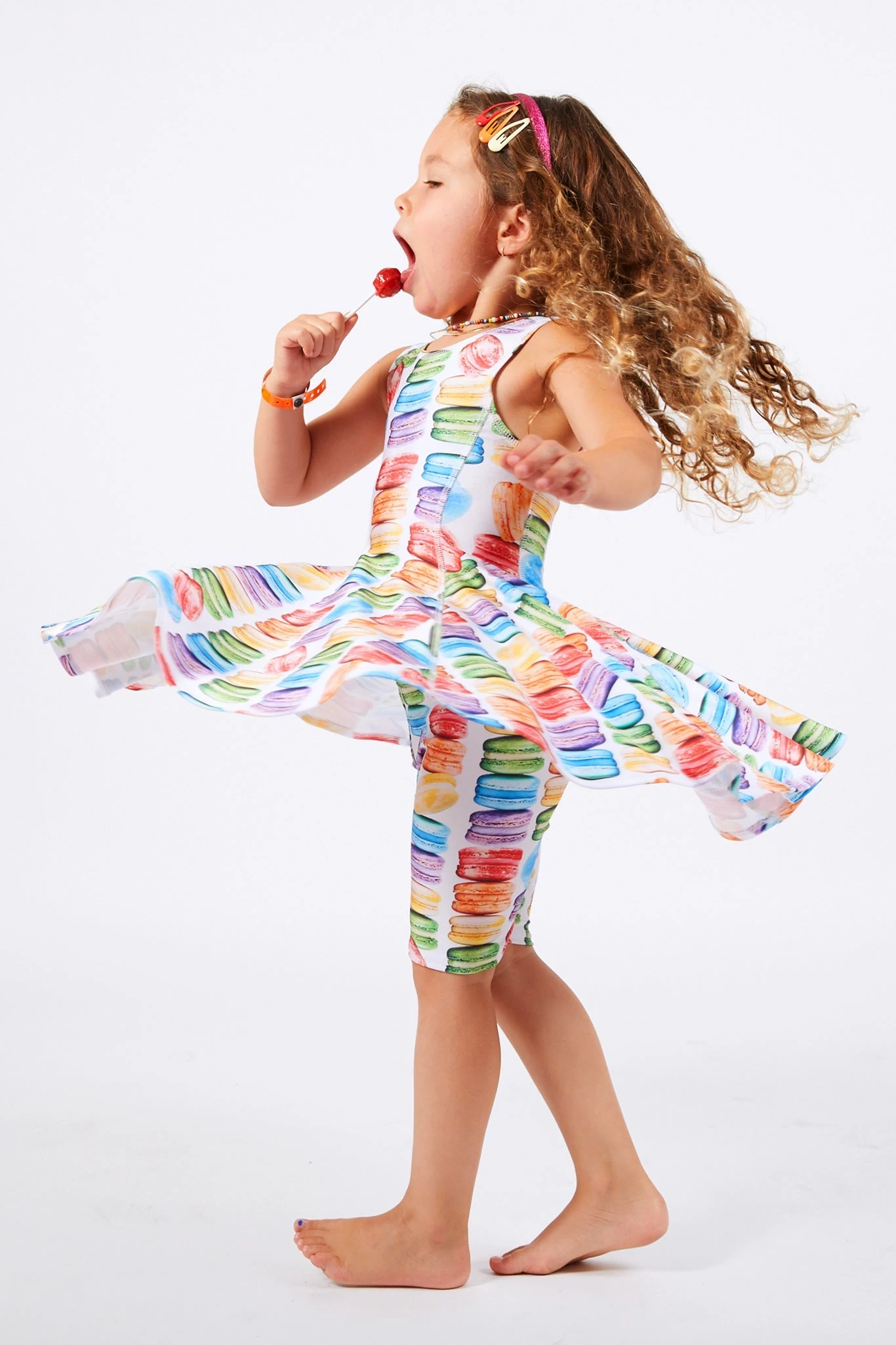 Our new favorite way to enjoy dessert: as bike shorts for girls. Featuring Dana’s macarons, these shorts are super-sweet and ultra-comfy! Perfect for your girls on the go.