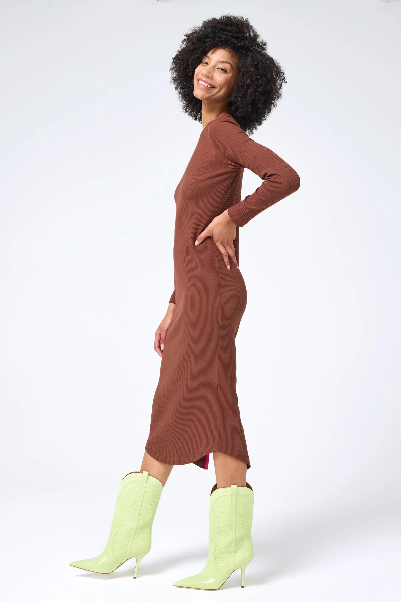 Be the first to review “Long Sleeve Rib Dress In Cafe” Cancel reply