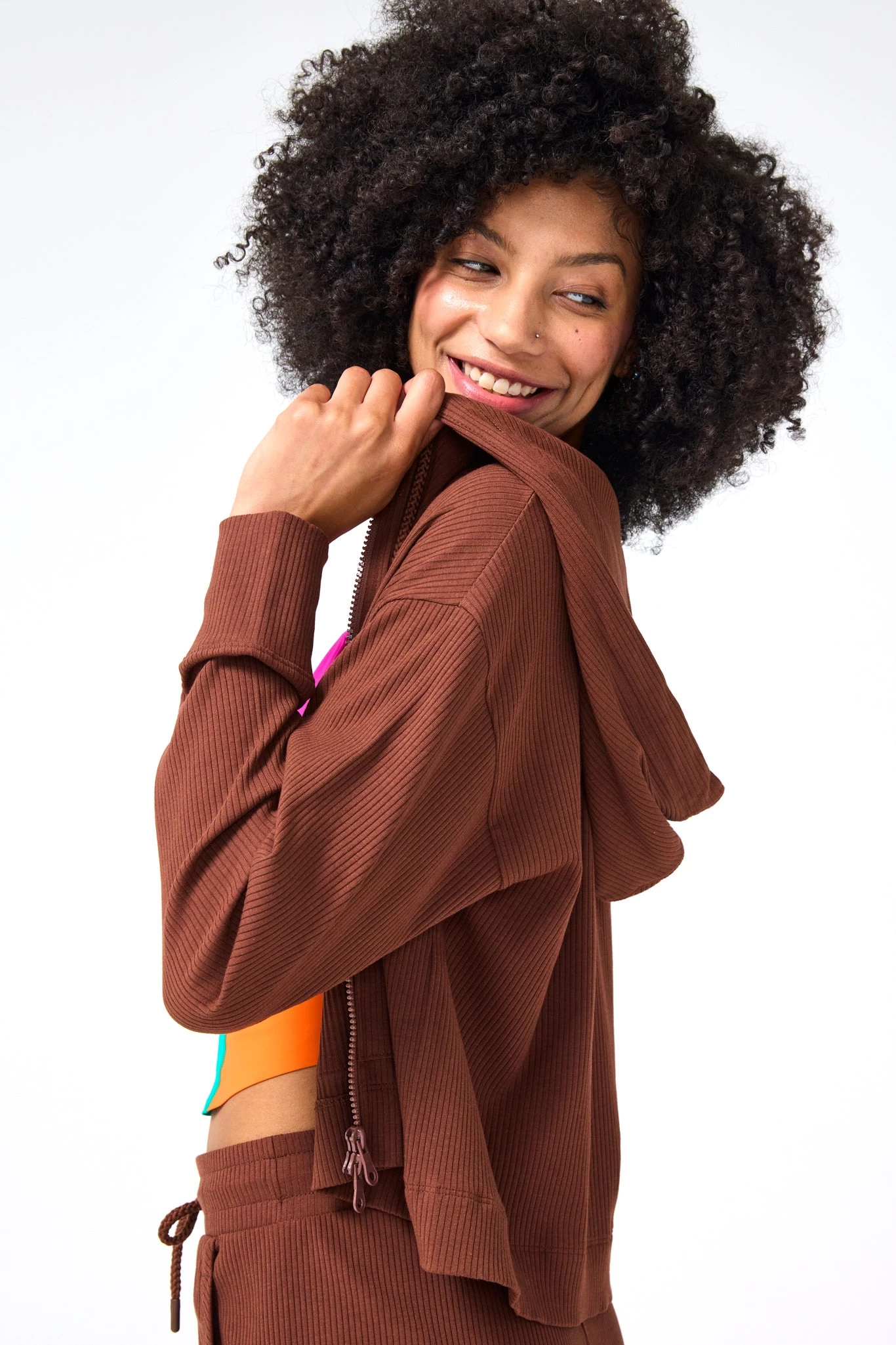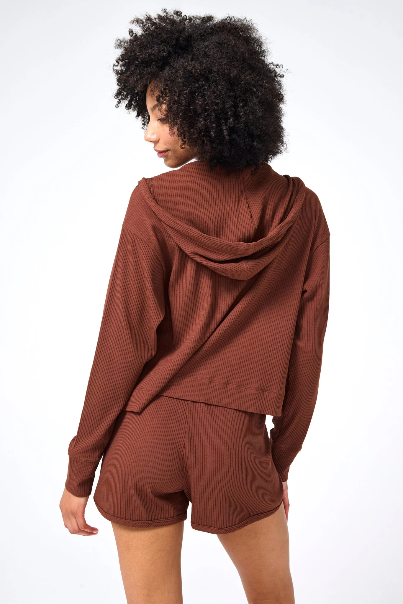 Rib Crop Hoodie in Cafe