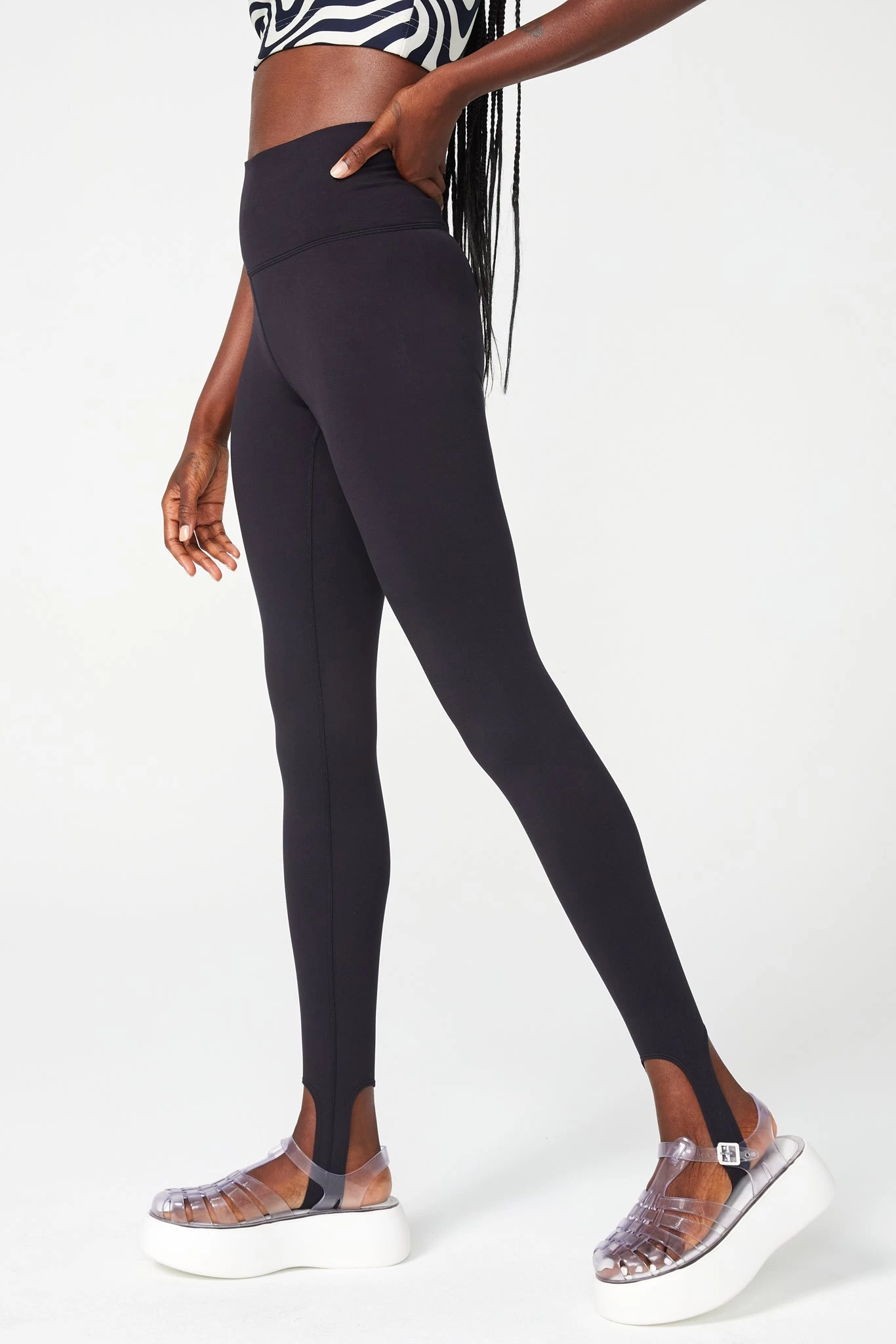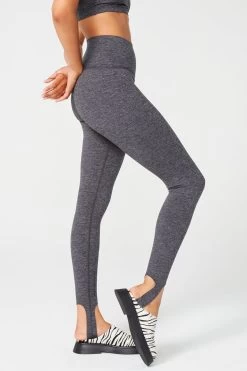 Get cozy in a collegiate gray stirrup legging. With an elastic-free waistband, this super-soft style is all about comfort while looking chic.
