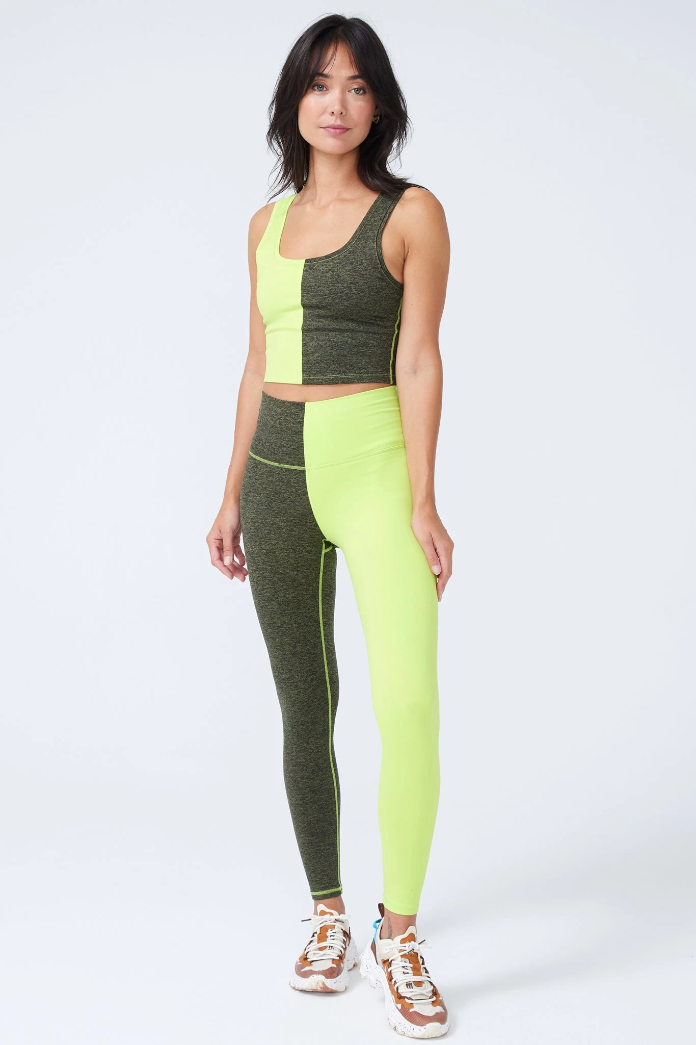 Two Tone TLC Leggings in Uniform Green and Acid Lime