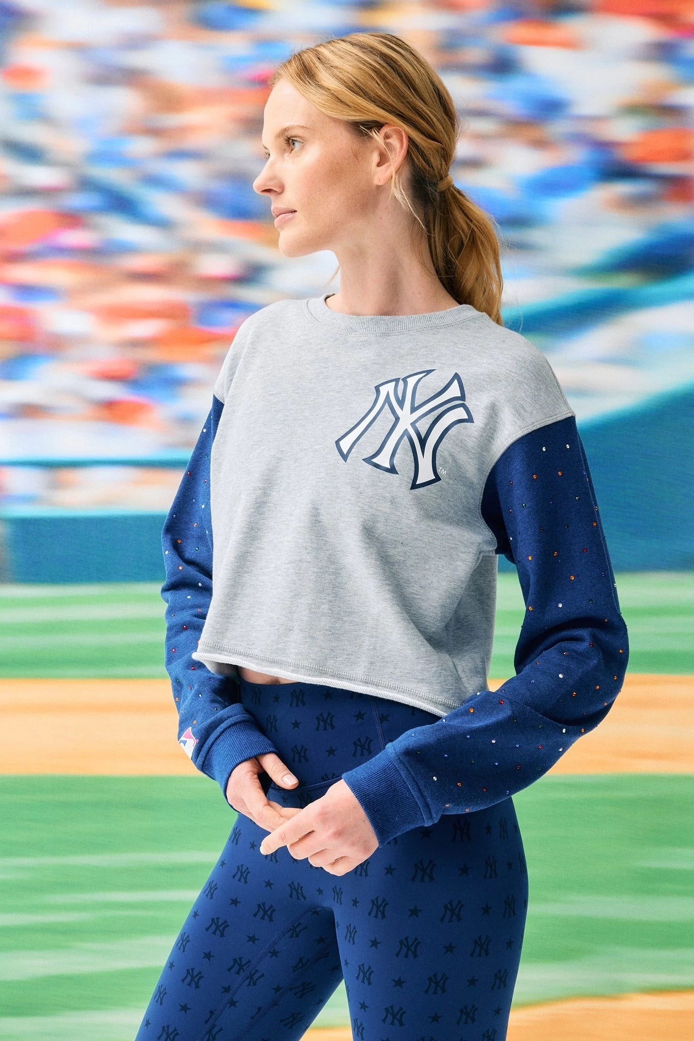 Yankees Colorblock Raw Hem Gems Cropped Crew in Navy